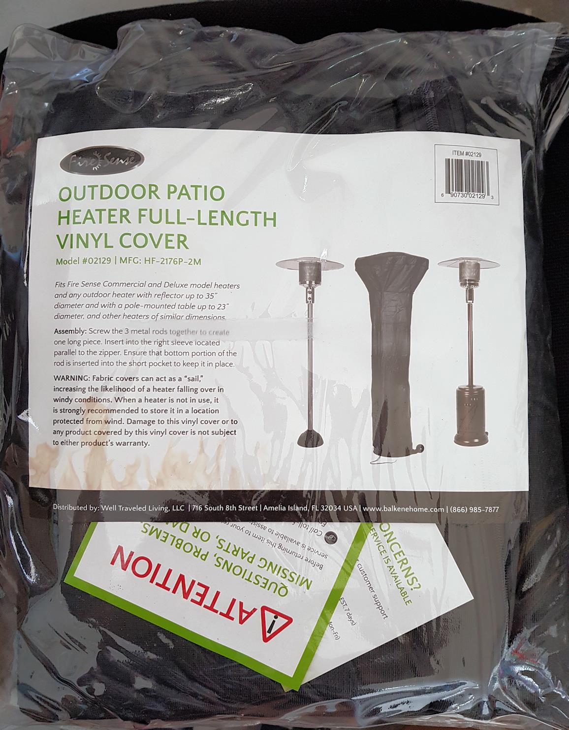 Fire Sense Full Length Outdoor Patio Heater Vinyl Cover 10 Guage