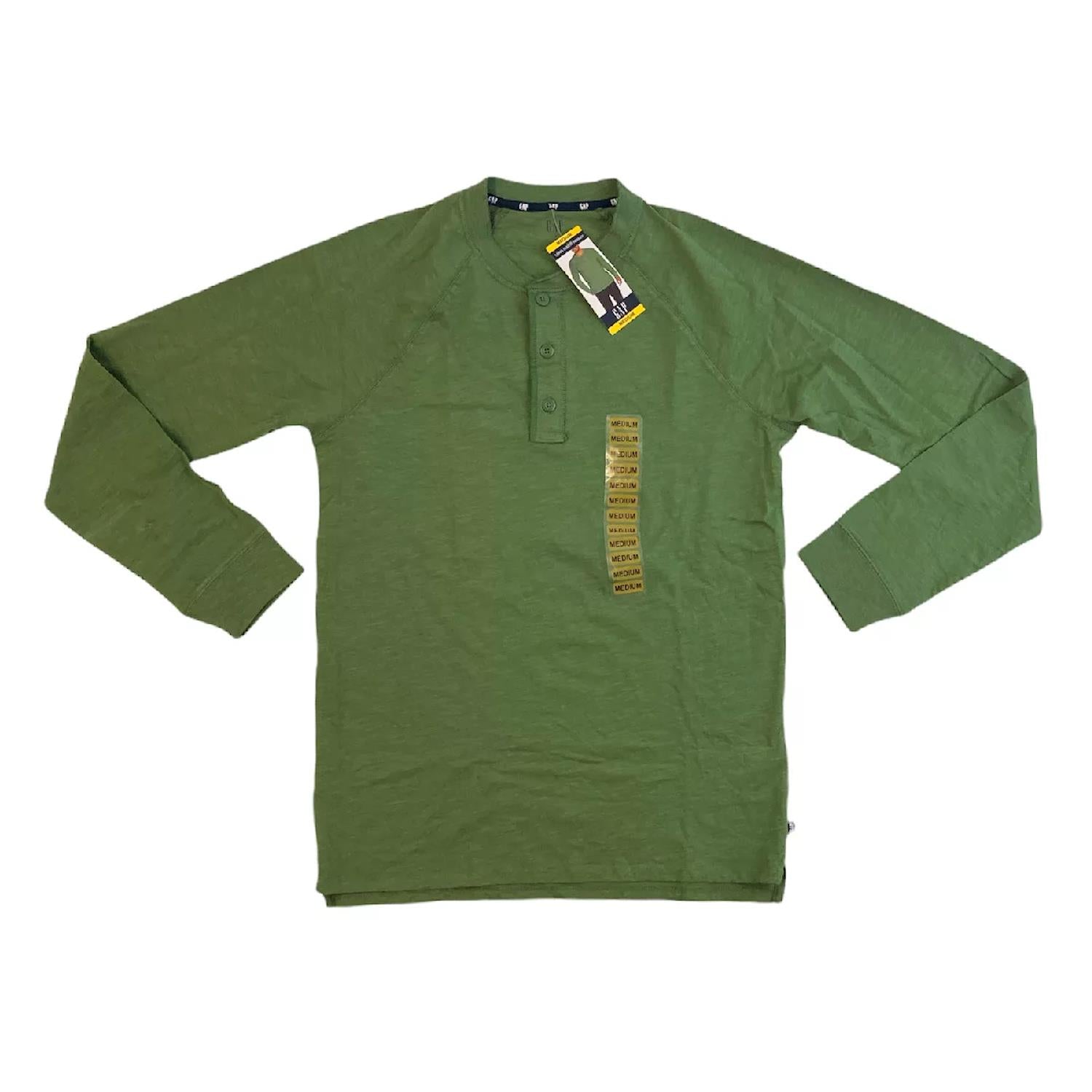 The Men's Long Sleeve Henley is the perfect mix between a button-up polo and a relaxed t-shirt. Made of 100% cotton, this shirt will be your new favorite item in the closet. Dress it up or down. Great for layering or wearing with your best jeans. Nice for cool spring evenings! GAP Style Pullover Manufacturer GAP Product Type Mens Henley Shirts Mpn QMT4555S. 100% Cotton Easy Relaxed Fit 3 Button Henley Machine Wash Cold; Tumble Dry Low.