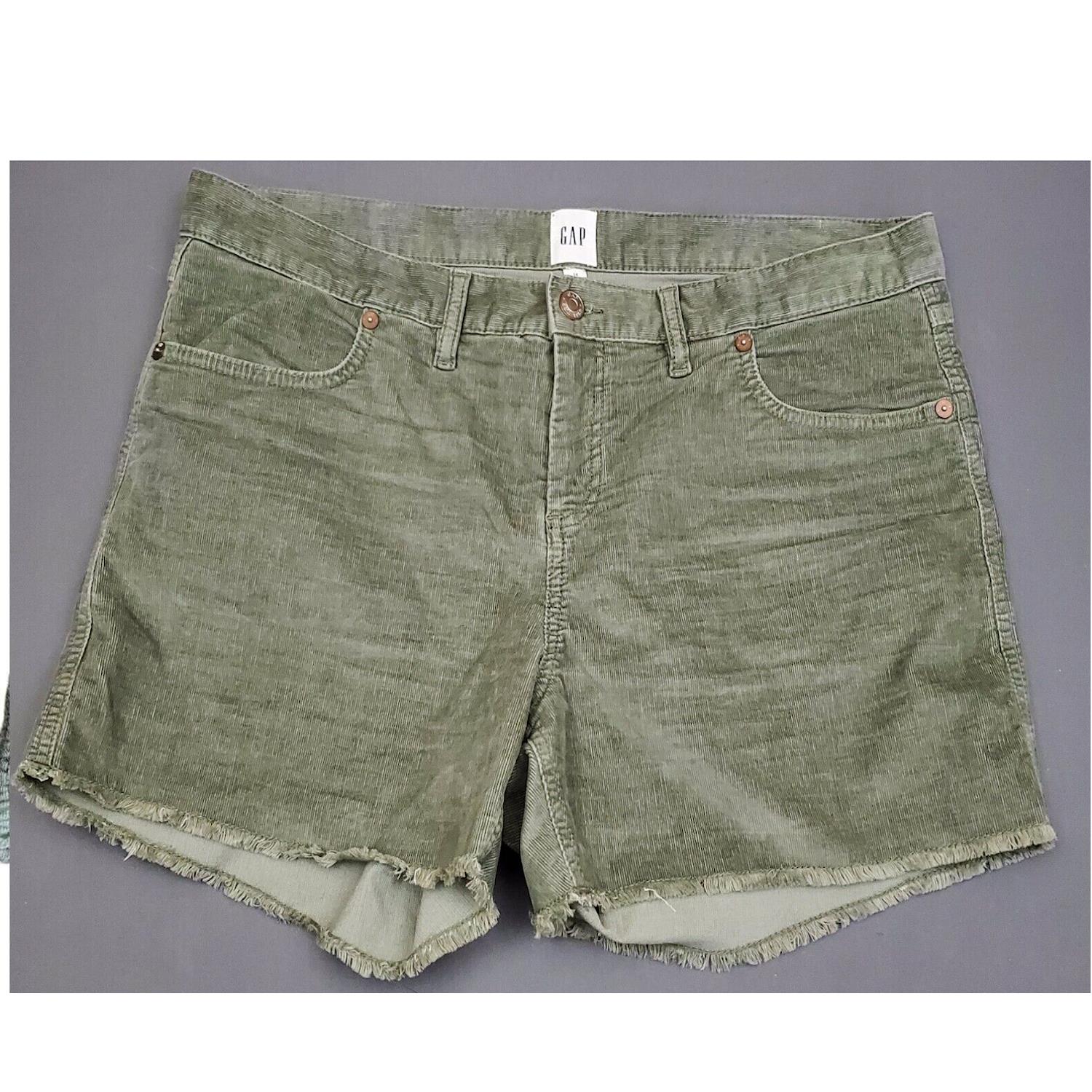 These corduroy shorts with fray hems are perfect for summer weather. They are machine washable and come in assorted colors. Great for wearing out to casual events, or even your favorite band concert. Grab your favorite tee, your new favorite shorts and get out and enjoy the weather. GAP Style Mid Rise Manufacturer GAP Product Type Shorts Mpn QLS0700S. Mid Rise, hits at natural waist 3 1/2" Inseam Front Button Zip Close Raw Edge Hem.