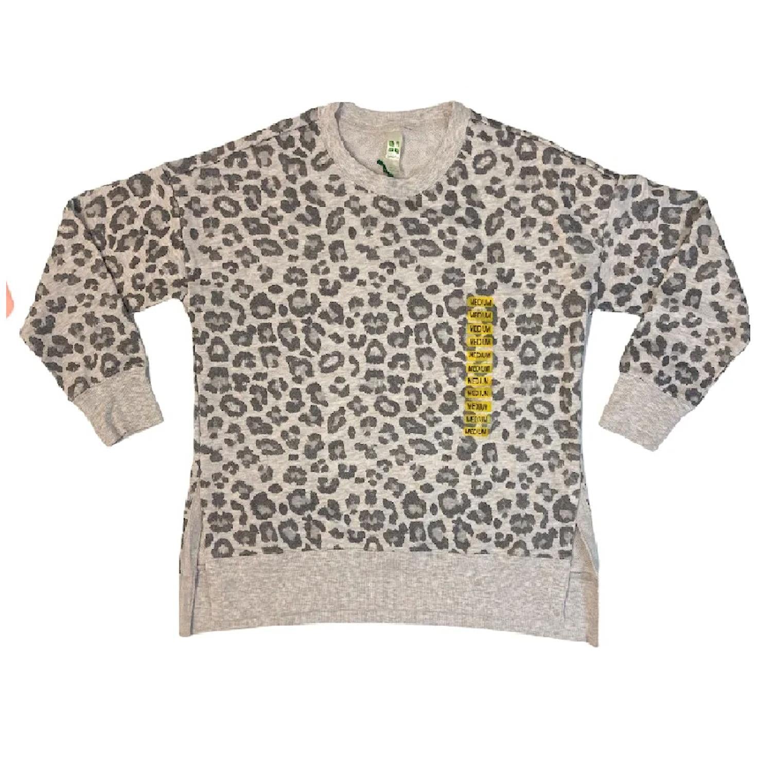 Green Tea Women's Long Sleeve Oversized Comfy Sweatshirt Top (Heather Leopard, XXL)