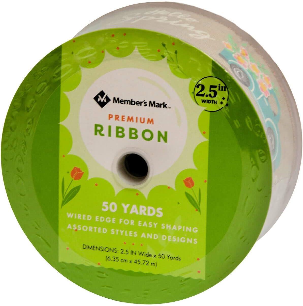 Member's Mark Premium Ribbon Wired Edge 50 Yards 2.5" Hello Spring Flower Pickup