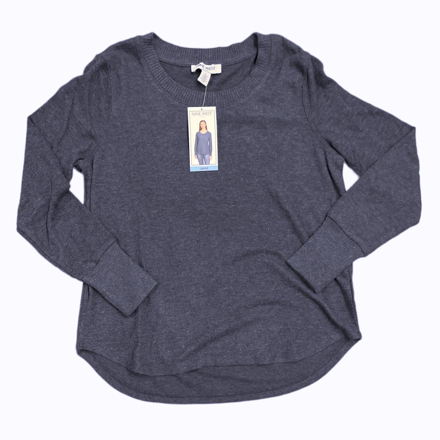 Nine West Women's Long Sleeve Rib Neck Pullover Soft Knit Top