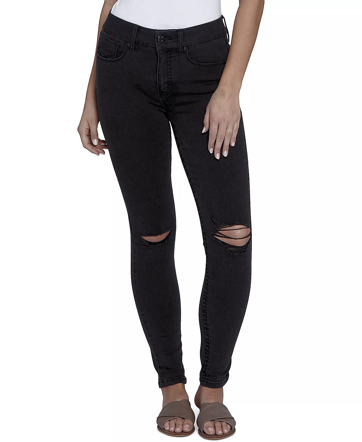 Seven7 Tummyless Ripped High Rise Skinny Jeans Black