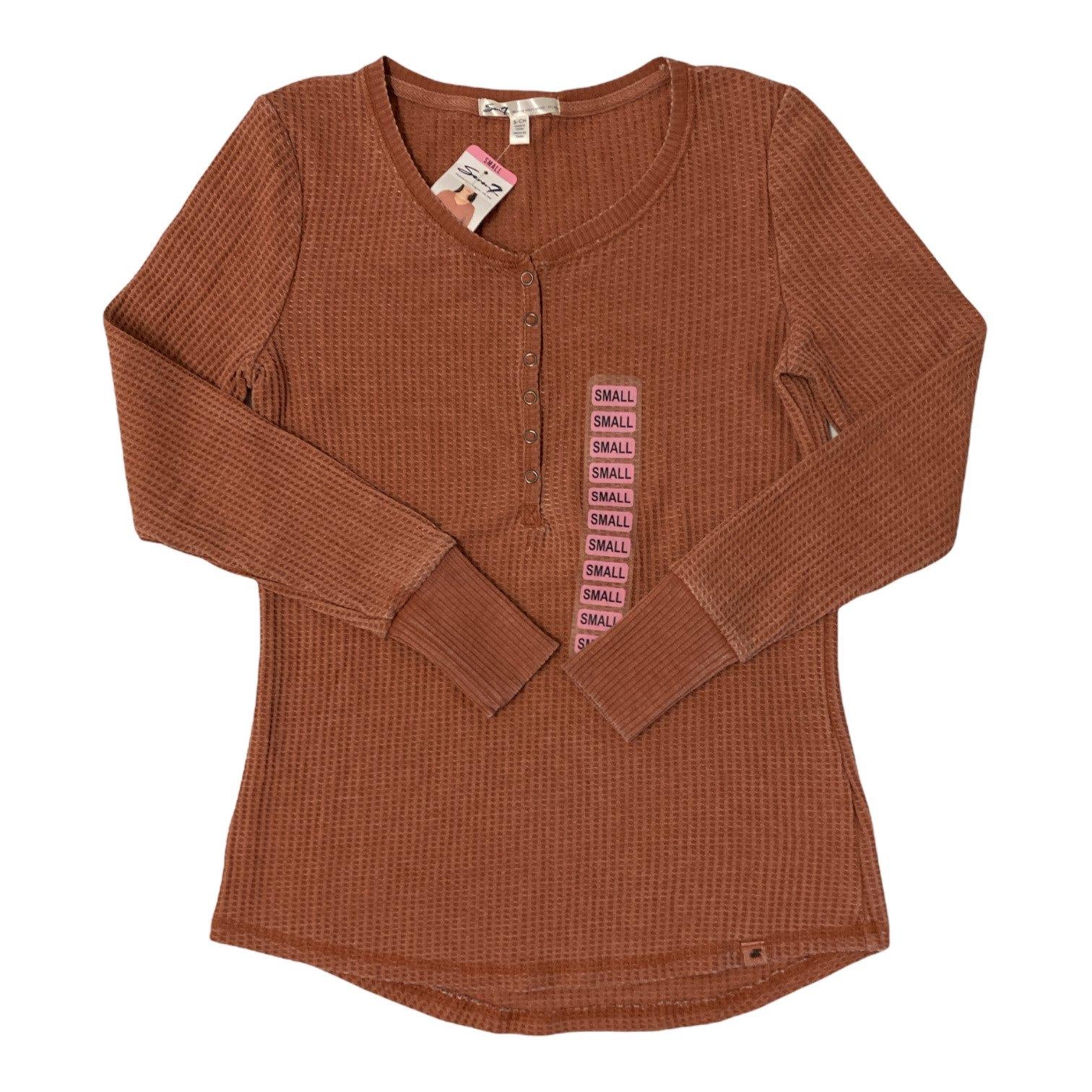 Seven7 Women's Long Sleeve Snap Waffle Henley