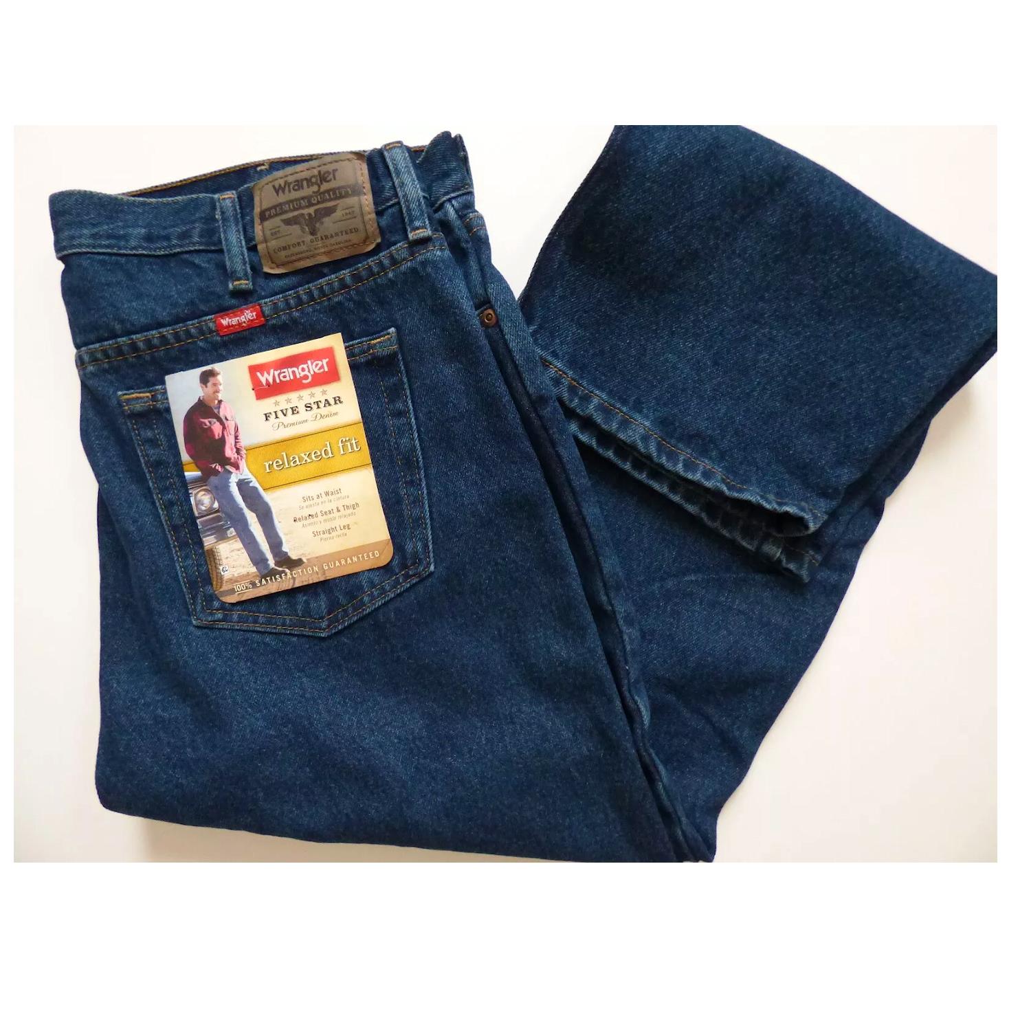 Wrangler Men's Five Star Premium Denim Relaxed Fit Straight Leg Jeans Dark Rinse 30x30